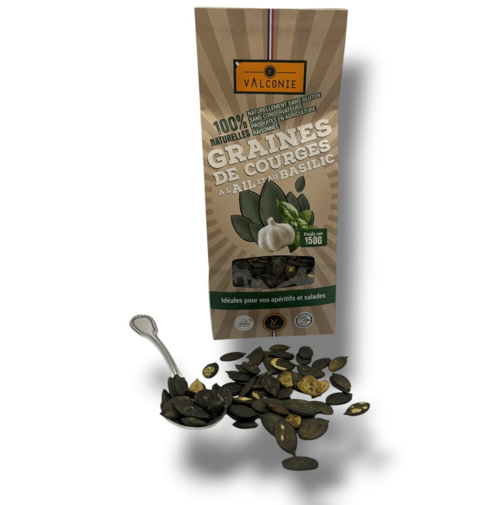 9,60 € / UnitéGRAINE DE COURGES À L’AIL ET AU BASILIC 150 GR